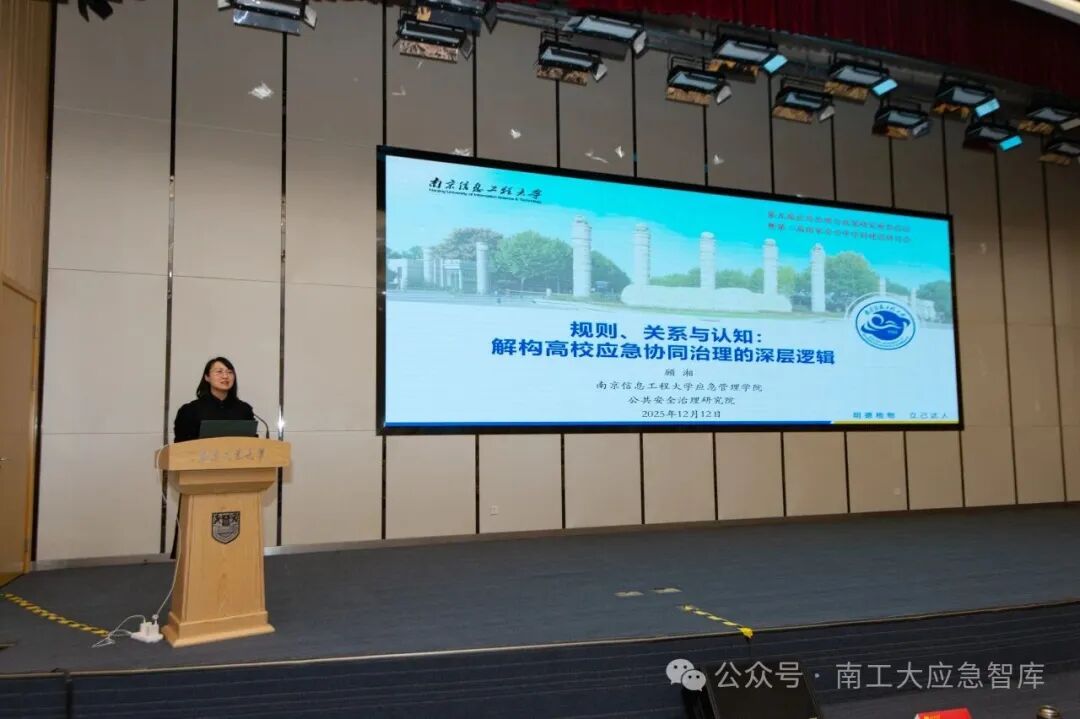 南京信息工程大学应急管理学院副院长顾湘副教授作题为《规则、关系与认知:解构高校应急协同治理的深层逻辑》特邀报告。