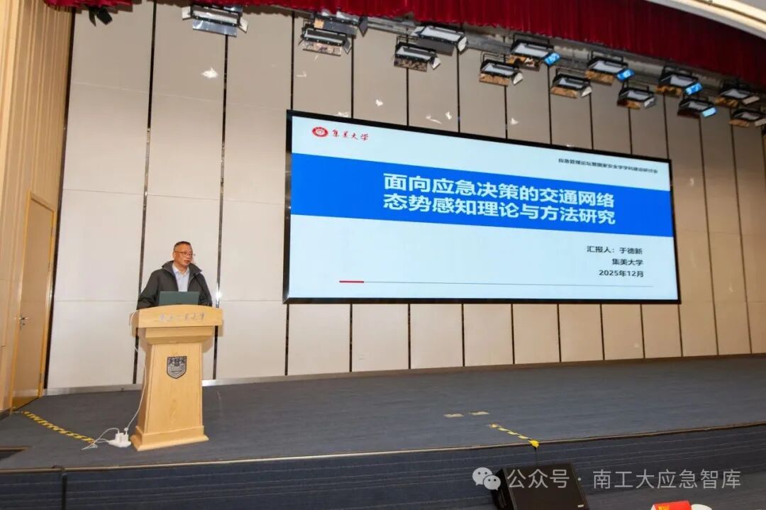 集美大学航海学院教授、交通安全应急信息技术国家工程研究中心集美大学分中心副主任于德新作题为《面向应急决策的交通网络态势感知理论与方法研究》特邀报告。