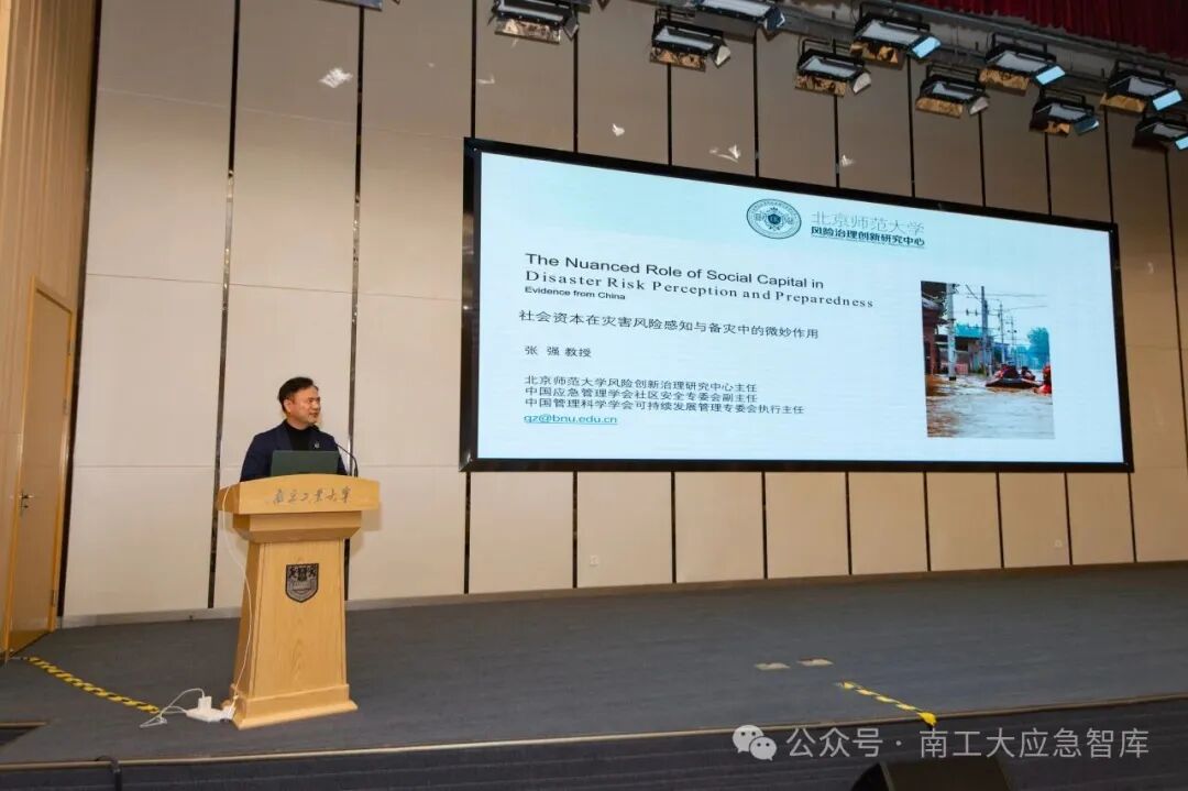 北京师范大学政府管理学院教授、风险治理创新研究中心主任张强作题为《社会资本在灾害风险感知和备灾中的微妙作用》特邀报告。